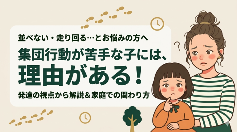 「うちの子、みんなと一緒に動けなくて…」そんな悩みを持つ保護者の方へ。子どもが集団行動を苦手とする理由を発達の視点からわかりやすく解説し、家庭でできる具体的な関わり方と専門的な支援について紹介します。